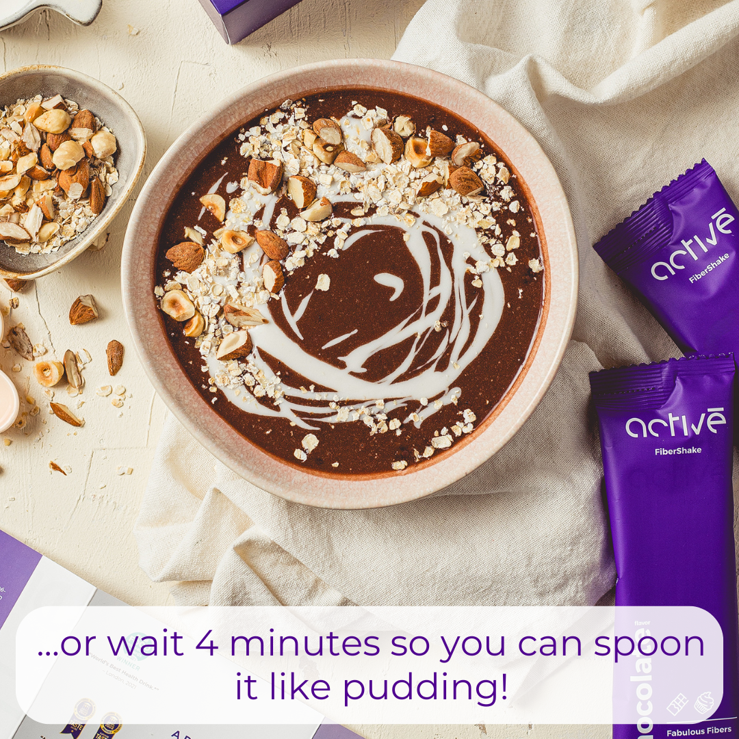 Simply mix FiberShake with cold water, milk, or your favorite milk substitute, and in just 1 minute, it becomes a thick, drinkable treat.